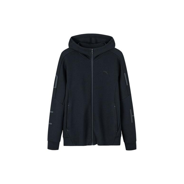 Anta Толстовка на молнии с однотонным полосатым принтом Мужские топы Черный 152237720-4
