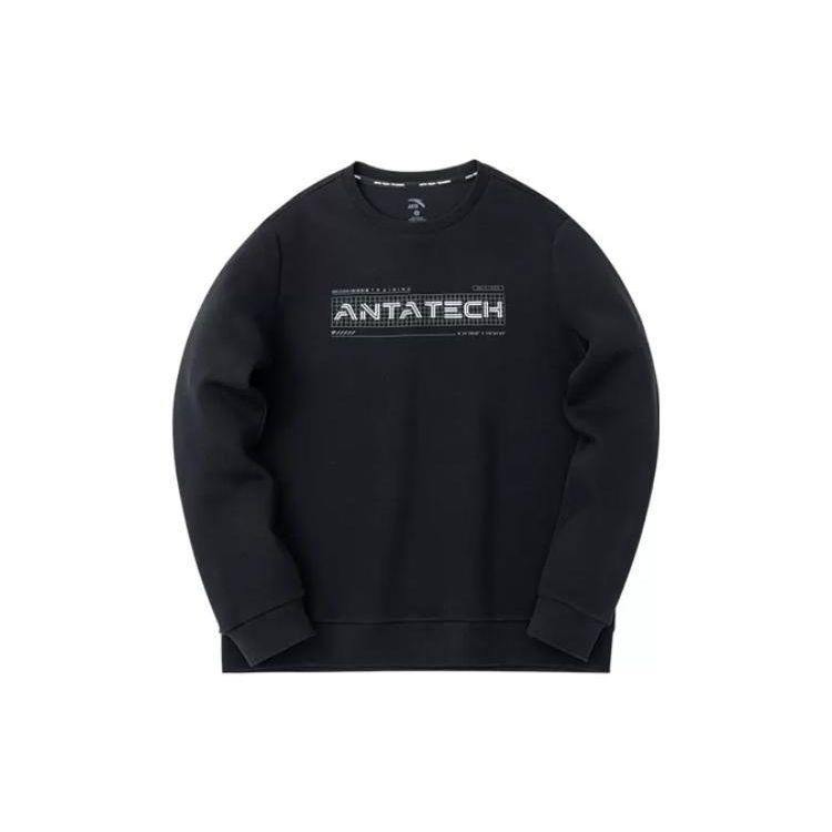 Anta Пуловер с круглым вырезом и принтом логотипа, мужские топы, базовый черный 152317727-4