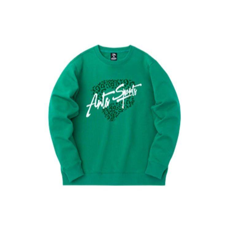 Anta Life Series Сплошной цветной принт с надписью Толстовка с длинными рукавами на флисовой подкладке Топы унисекс Леопард-зеленый 172248769-2