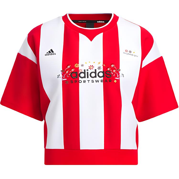 Adidas Повседневная футболка с цветными блоками и алфавитом X Shuting Qiu, женские топы, светло-малиновые IM8446