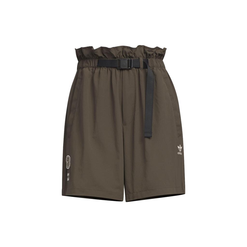 Adidas Сотрудничество с трилистником и Chang Cang Xiong SS23 Лоскутные шорты с поясом и ручной росписью Женские брюки оливково-зеленого цвета IS0628