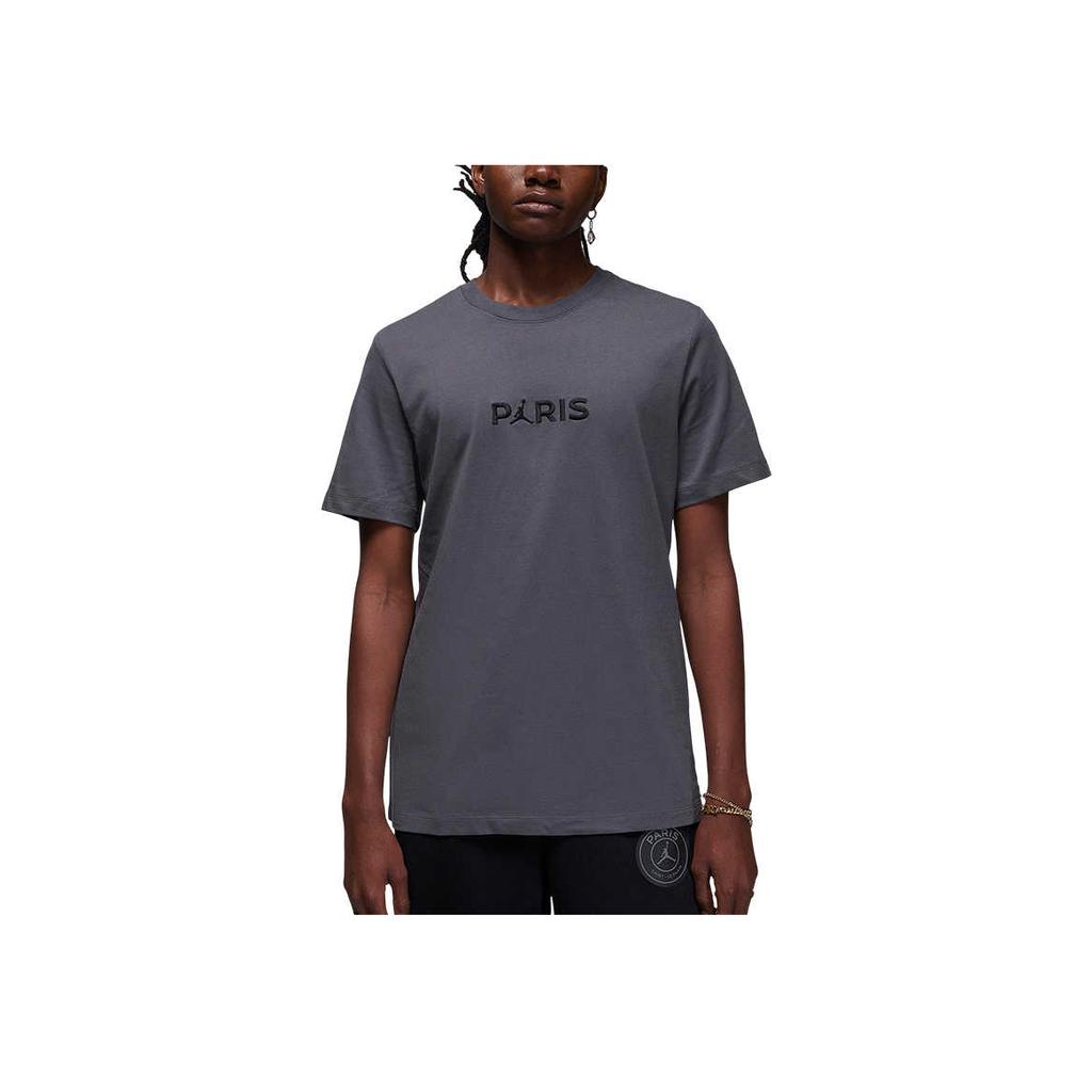 Jordan Paris Saint-Germain Дышащая футболка с круглым вырезом и короткими рукавами с заниженными плечами Мужские топы Черный Серый DZ2941-068