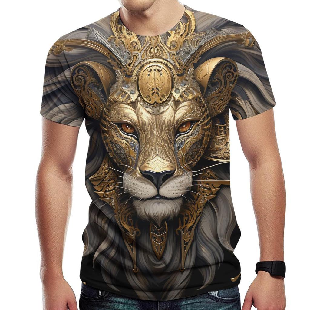 Летний топ с круглым вырезом и 3D-принтом в виде льва, модная повседневная мужская футболка с коротким рукавом