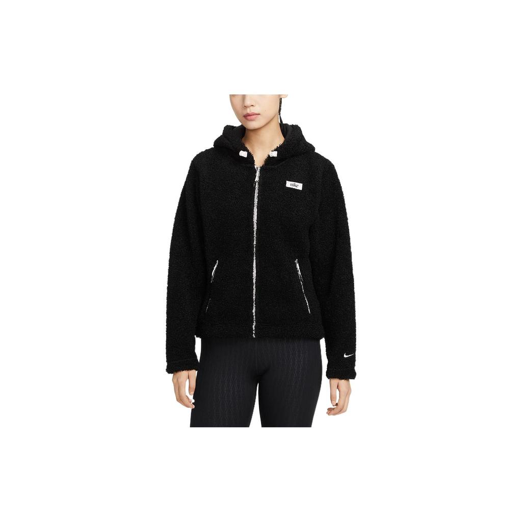 Nike Однотонная женская куртка с принтом букв, на молнии, с капюшоном, с длинным рукавом, теплая, черная DQ6269-010