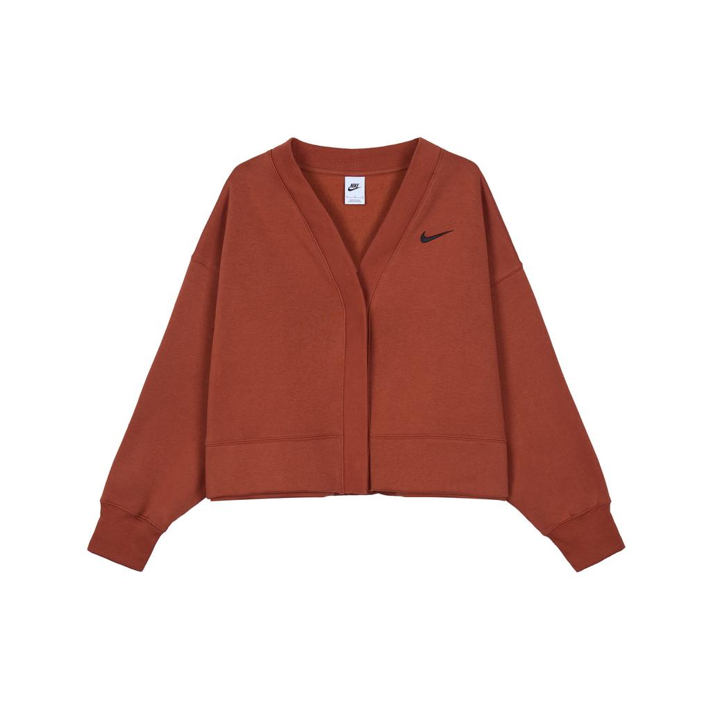 Nike Флисовый повседневный свободный трикотажный свитер Phoenix, женские топы, темно-оранжевый FB8773-832