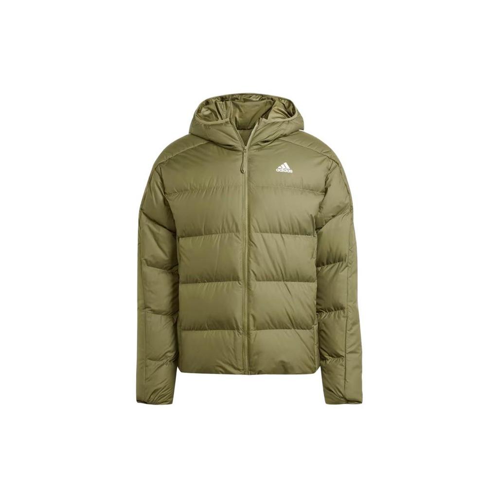Adidas Мужская пуховая куртка Essentials средней плотности с капюшоном, верхняя одежда оливково-зеленого цвета IK3214