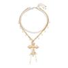 Винтажное многослойное эстетичное ожерелье с большим крестом, элегантная цепочка из бусин под жемчуг, женский чокер, Y2K украшение