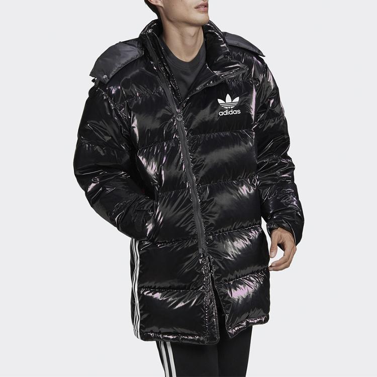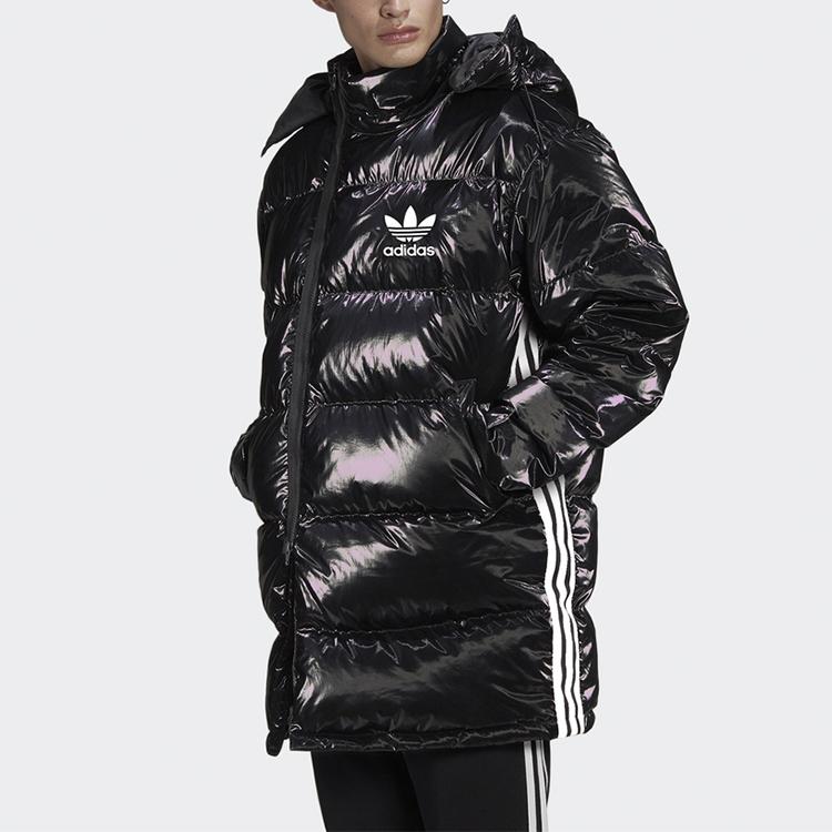 Adidas Оригинальный утепленный трилистник с капюшоном, пуховик средней длины, мужская верхняя одежда, черный GJ6732