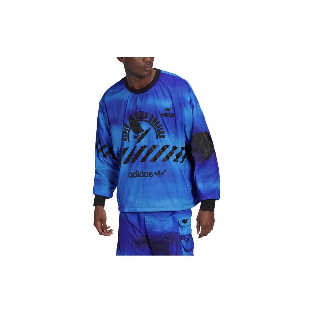 Adidas Оригинальная толстовка с длинным рукавом и круглым вырезом с принтом логотипа для мужчин, синяя HD4808