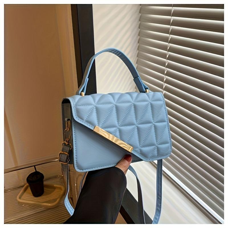 Стеганый ромбовидный узор, Регулируемый плечевой ремень Модная маленькая PU сумка кроссбоди - Белый, Черный, Хаки, Небесно-голубой, Сумка-мессенджер, Легкая