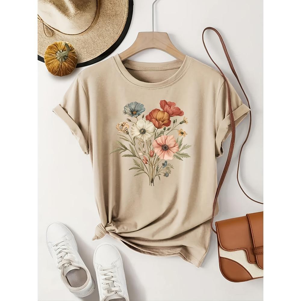 Цветочная модная футболка дышащий полиэстер женская повседневная с круглым вырезом короткий рукав красочный топ — купить товар онлайн с бесплатной доставкой по всему миру!
