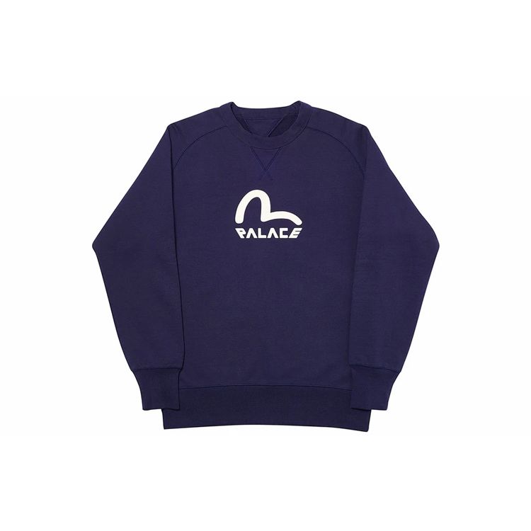 Palace Двусторонний свитшот с круглым вырезом совместного бренда Evisu, топы унисекс, синий PAL-SS20-010