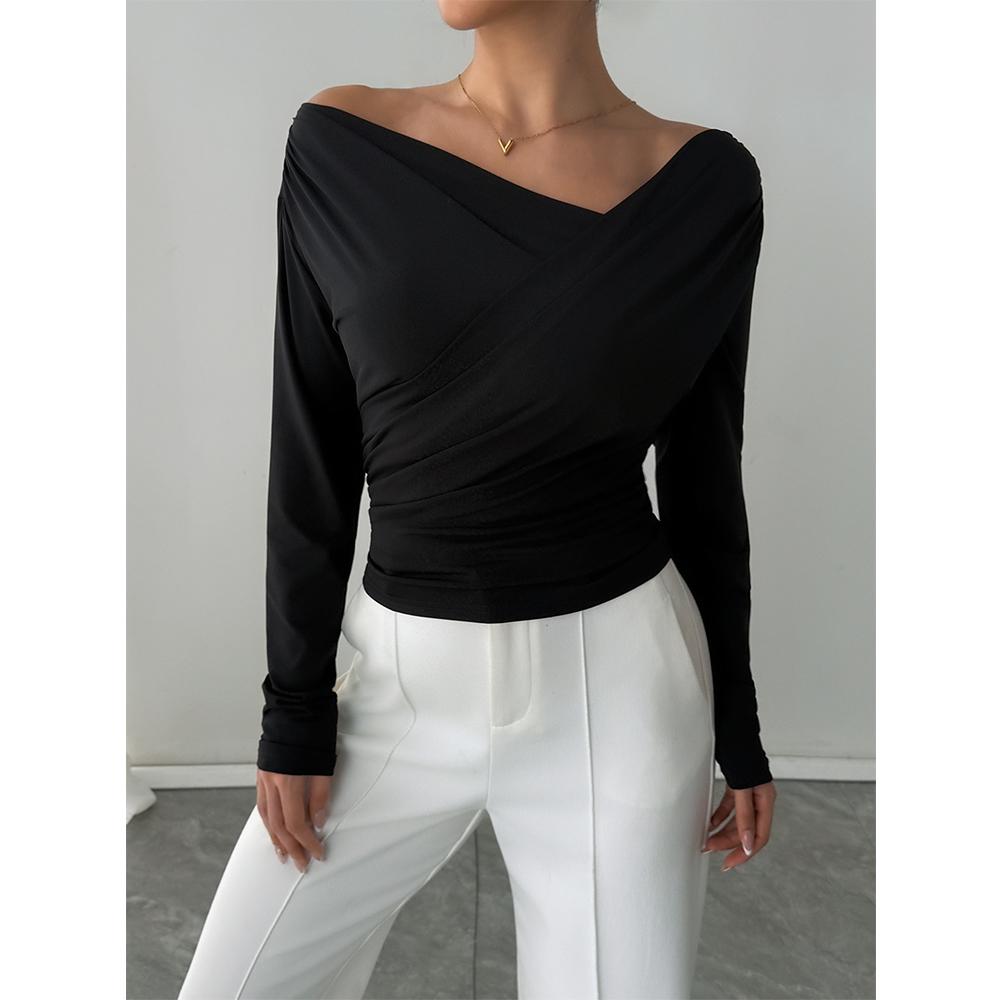 Женские топы с одним открытым плечом, длинным рукавом, драпировкой, асимметричным вырезом, облегающего кроя, Y2K-рубашка — купить товар онлайн с бесплатной доставкой по всему миру!