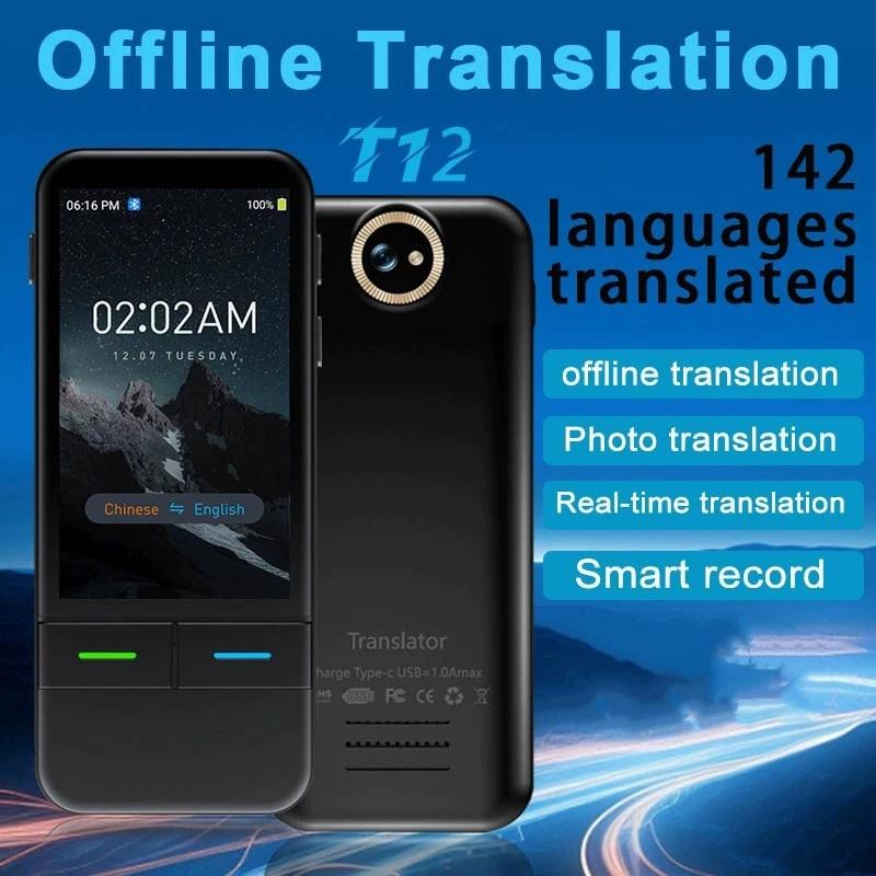 Портативный голосовой переводчик T12, устройство для двустороннего перевода, 142 языка, онлайн- и офлайн-перевод, перевод текста и фото