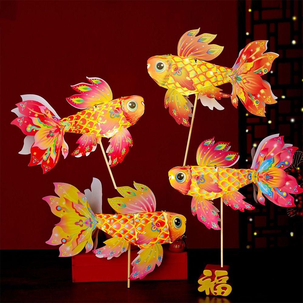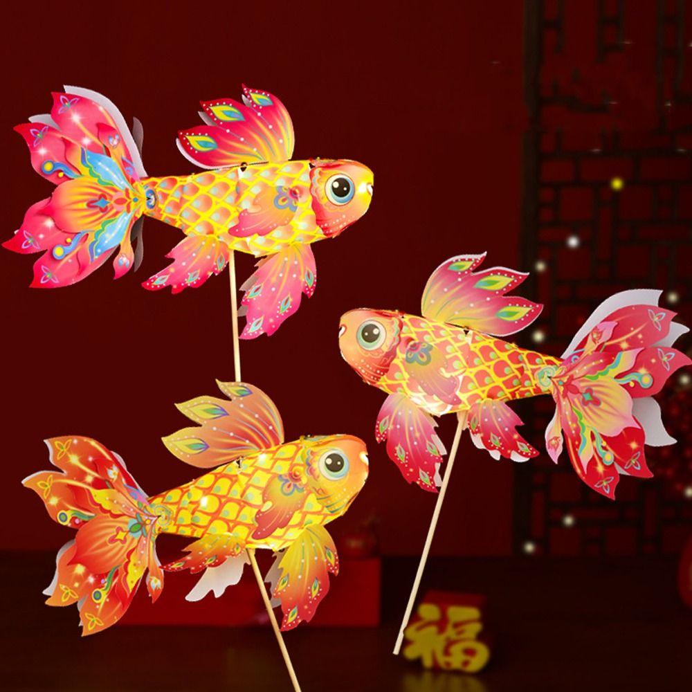 Chinese Traditional Handheld Fish Lantern Ancient Style Luminous Goldfish Light Celebration