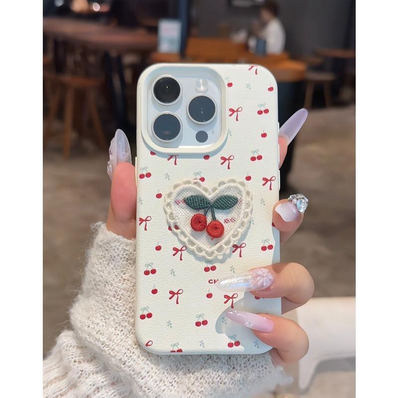 Корейский стиль, вышитая вишня, подходит для iPhone15promax Apple 14 чехол для мобильного телефона 13 кожаный узор 12 женщины 16