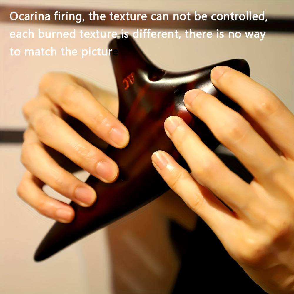 Керамическая окарина-флейта с 12 отверстиями в строе альт до - Красновато-коричневая глянцевая отделка с нотами, мундштук в форме звезды, идеально подходит для праздничных случаев