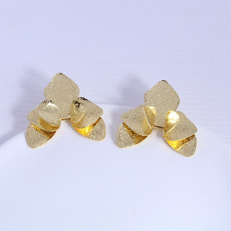 Трехслойные серьги-пусеты в виде цветка-треугольника для женщин, складной цветочный дизайн, золотистый цвет, серебристый цвет, лепестки, металл, геометрические женские серьги