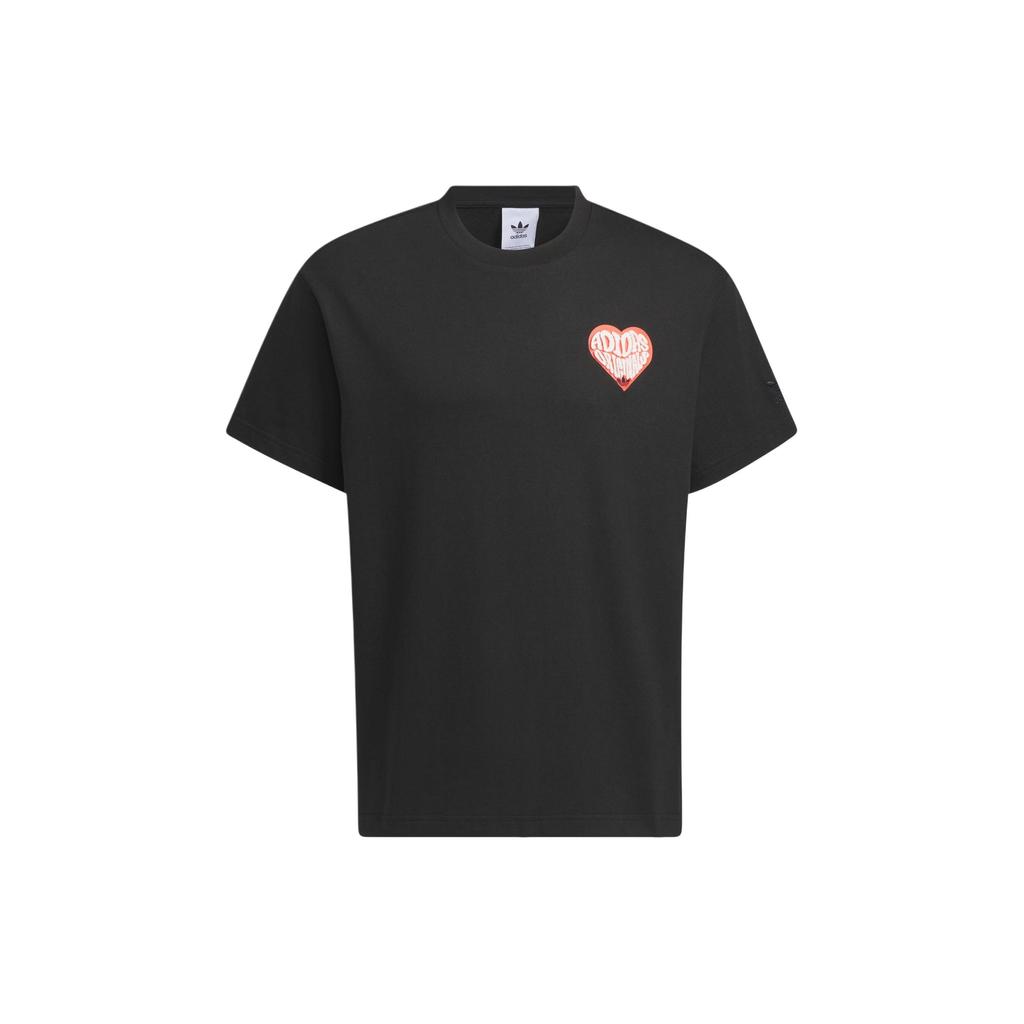 Adidas Оригинальная спортивная свободная футболка с короткими рукавами из серии «День святого Валентина» с принтом алфавита, топы унисекс, черный JE3470