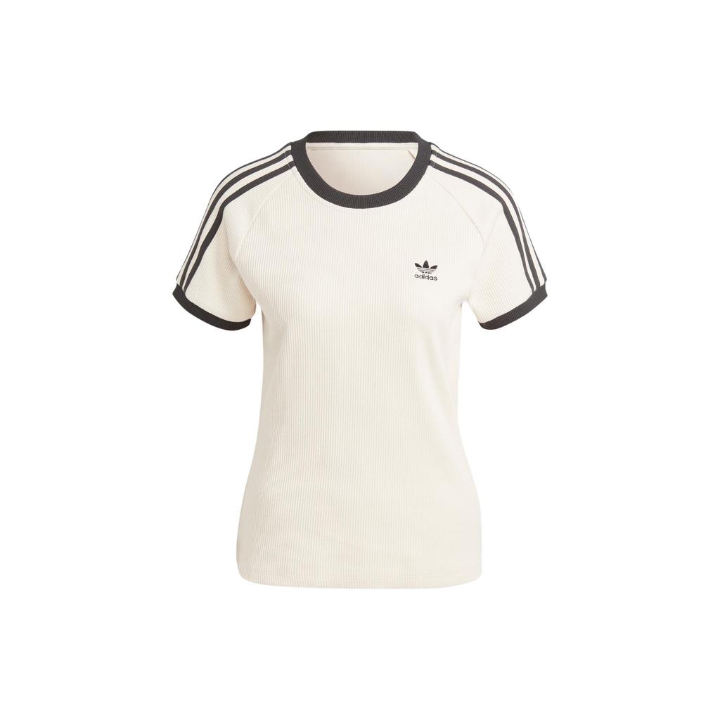 Adidas Узкая футболка Originals с 3 полосками, контрастный спортивный круглый вырез, женские топы с короткими рукавами Wonder-White IC5463