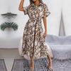 Женское летнее свободное леопардовое однобортное платье-рубашка на шнуровке