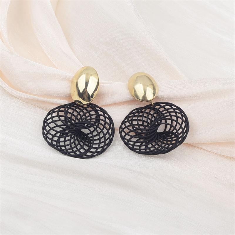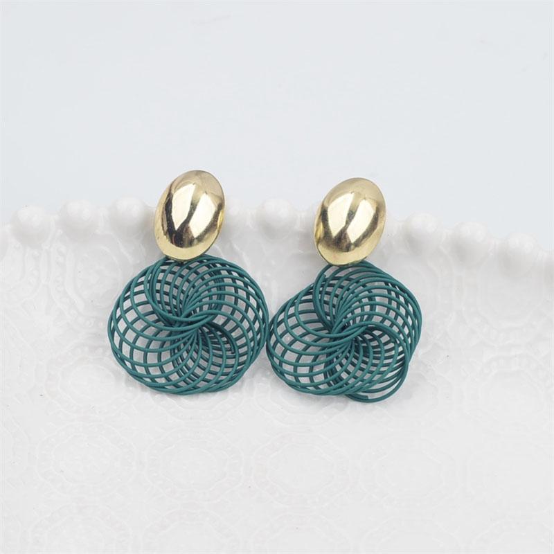 Богемные полые сетчатые подвески Женские серьги-подвески Фиолетовые Красные Винтовые Спиральные Подвесные Серьги Металлические Овальные Серьги-капли