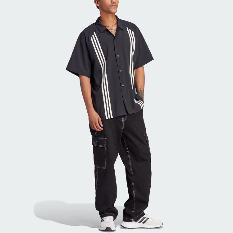 Adidas Рубашка Originals Clover Hack с тремя полосками, цветными блоками, свободный крой, мужские топы с короткими рукавами, черные HZ0720