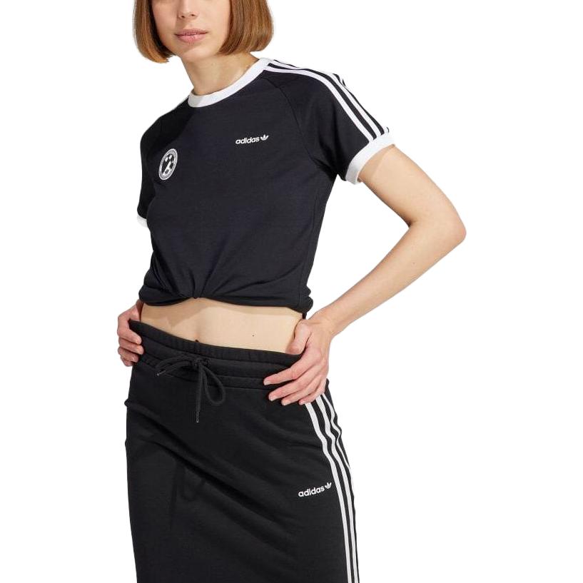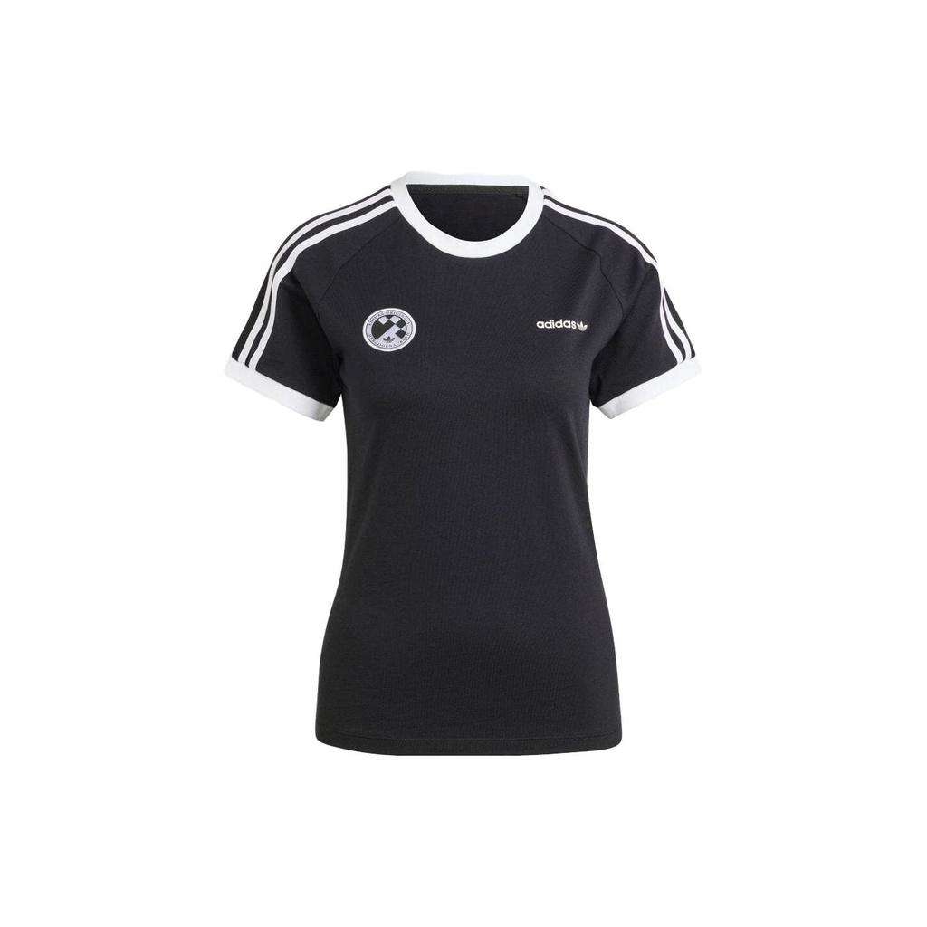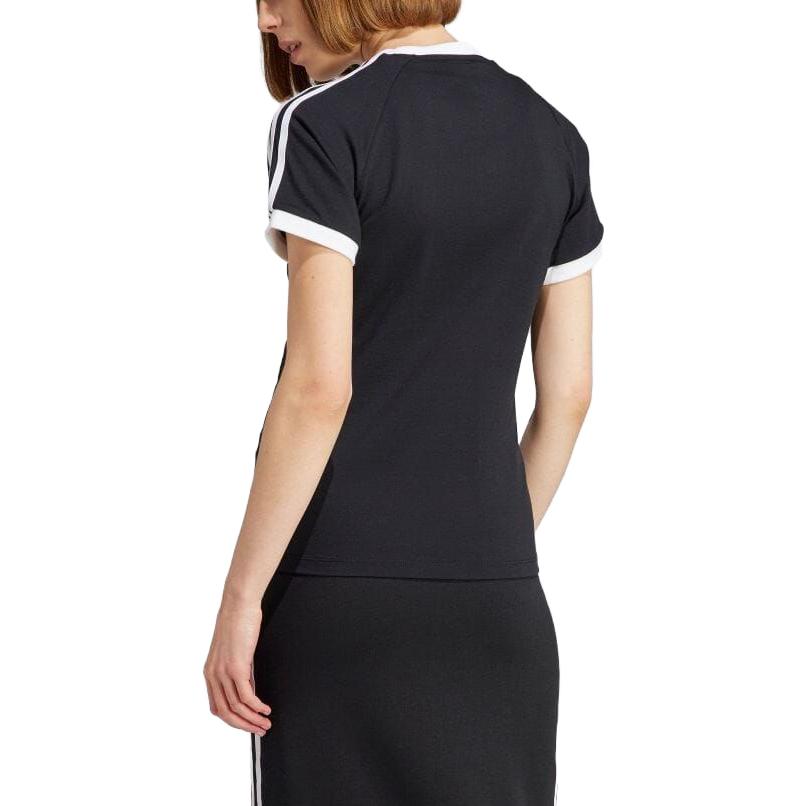 Adidas Футболка Originals Three Stripes Trefoil Crew Neck Slim Fit для женщин v3, черные топы IR9784