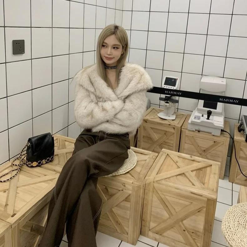 Роскошный бренд Осень Зима Меховое пальто Женское Короткое Ленивый ветер Куртка из лисьего меха Укороченная Пушистая Casaco De Pele Feminino