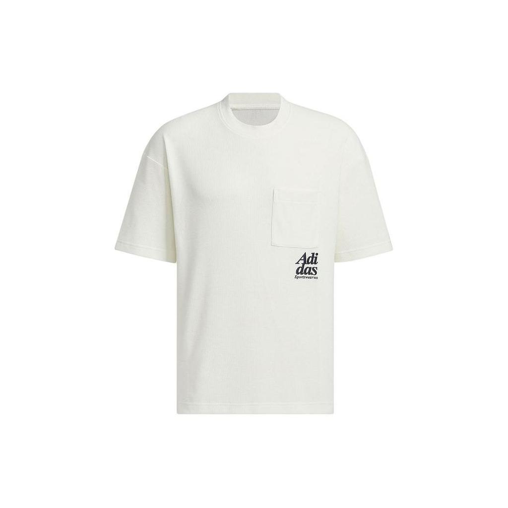 Adidas Футболка мужская спортивная с коротким рукавом и вышитым рисунком в виде буквы, кармана, с круглым вырезом, белая JI9824