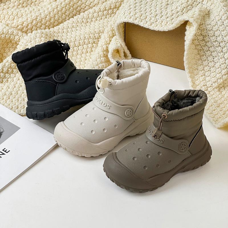 Детские зимние ботинки, уличные ботинки, водонепроницаемые и нескользящие, повседневные хлопковые ботинки для мальчиков, теплые на флисе, ботинки с закрытым носком для девочек