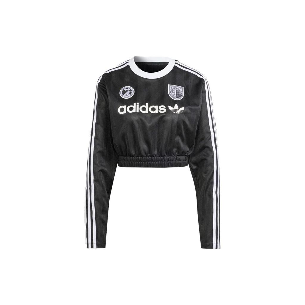 Adidas Оригинальная укороченная футболка с длинным рукавом, женские топы, черный цвет IR9802
