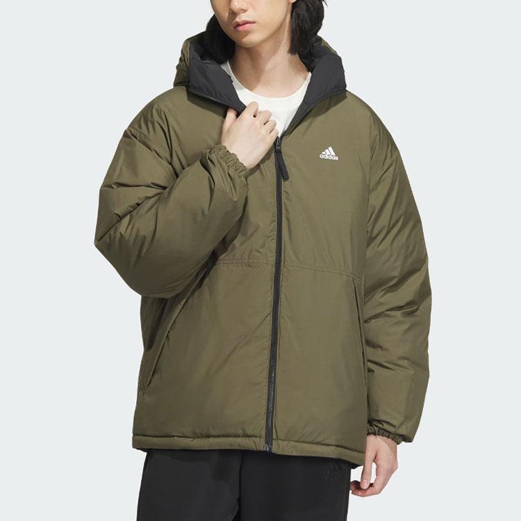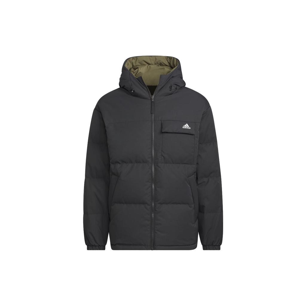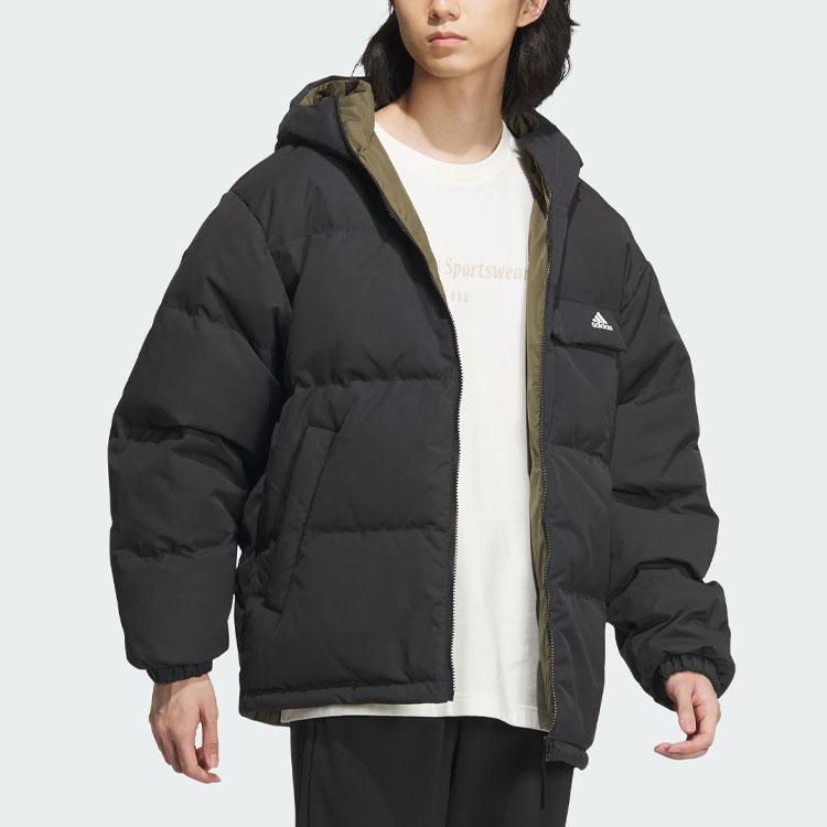 Adidas Двусторонний пуховик с буквенным принтом и капюшоном, мужская верхняя одежда, черный IV7569
