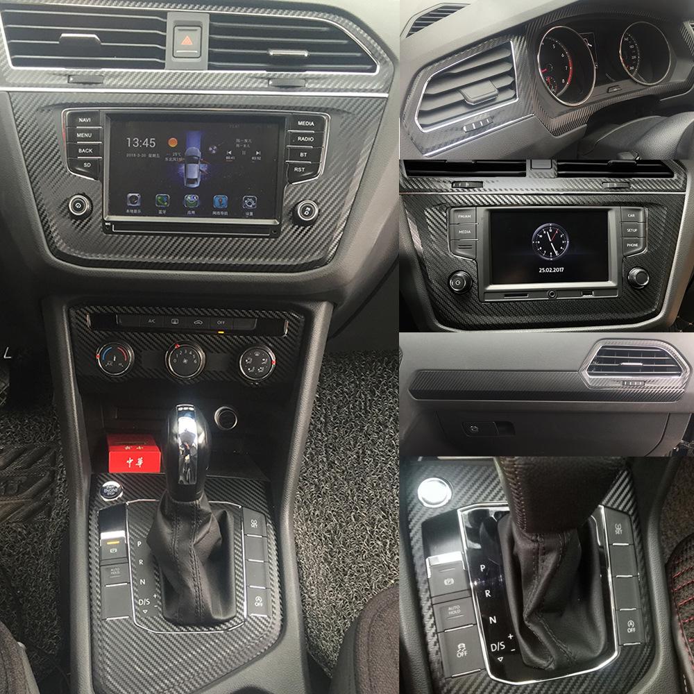 Наклейки из углеродного волокна для интерьера Custom 17-19 Tiguan: Декор рычага переключения передач, центральной консоли, дверной панели.
