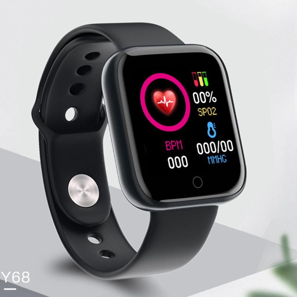 Умные часы Y68 с монитором сердечного ритма, фитнес-трекером активности, для мониторинга сна, с функцией удаленной фотосъемки, черные