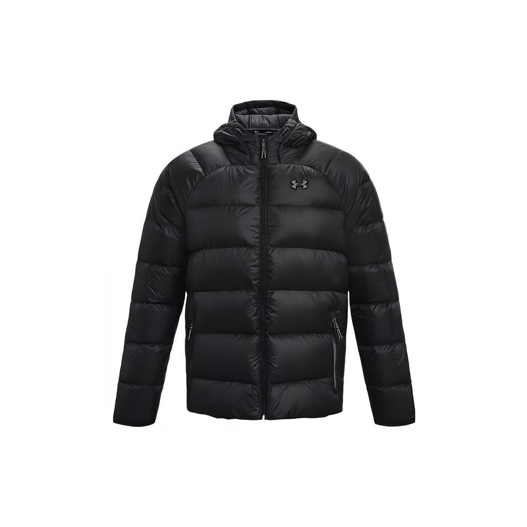 Under Armour Сплошной цвет с логотипом на молнии, ветрозащитный теплый пуховик с капюшоном, мужская верхняя одежда, черный 1364903-003