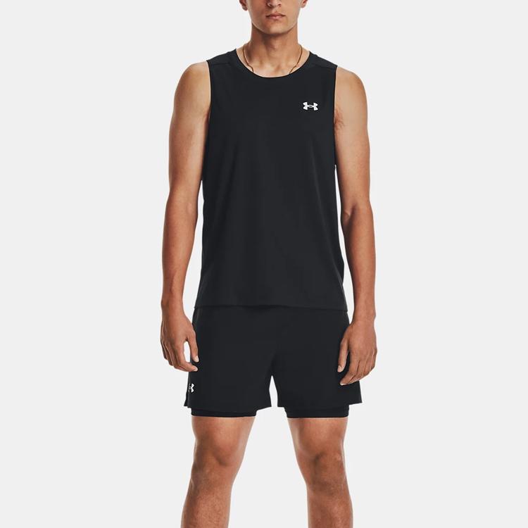 Under Armour Однотонный жилет для бега без рукавов с круглым вырезом, мужские топы, черный 1376994-001