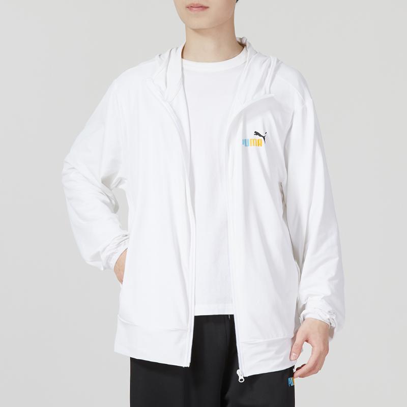 Puma Сплошной цвет с буквенным принтом и логотипом Вязаная куртка Куртки унисекс Белый 678006-02