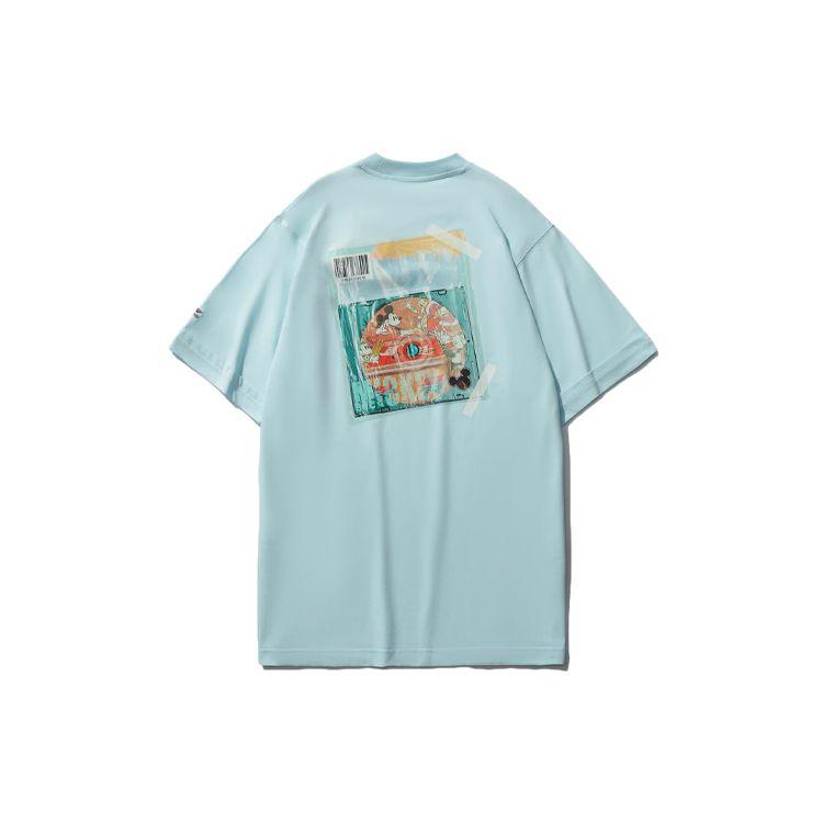 Li Ning X Disney Collaboration Sports Fashion Series Printed Round Neck Short Sleeve T Shirt Women Tops Light-Blue AHSR214-4