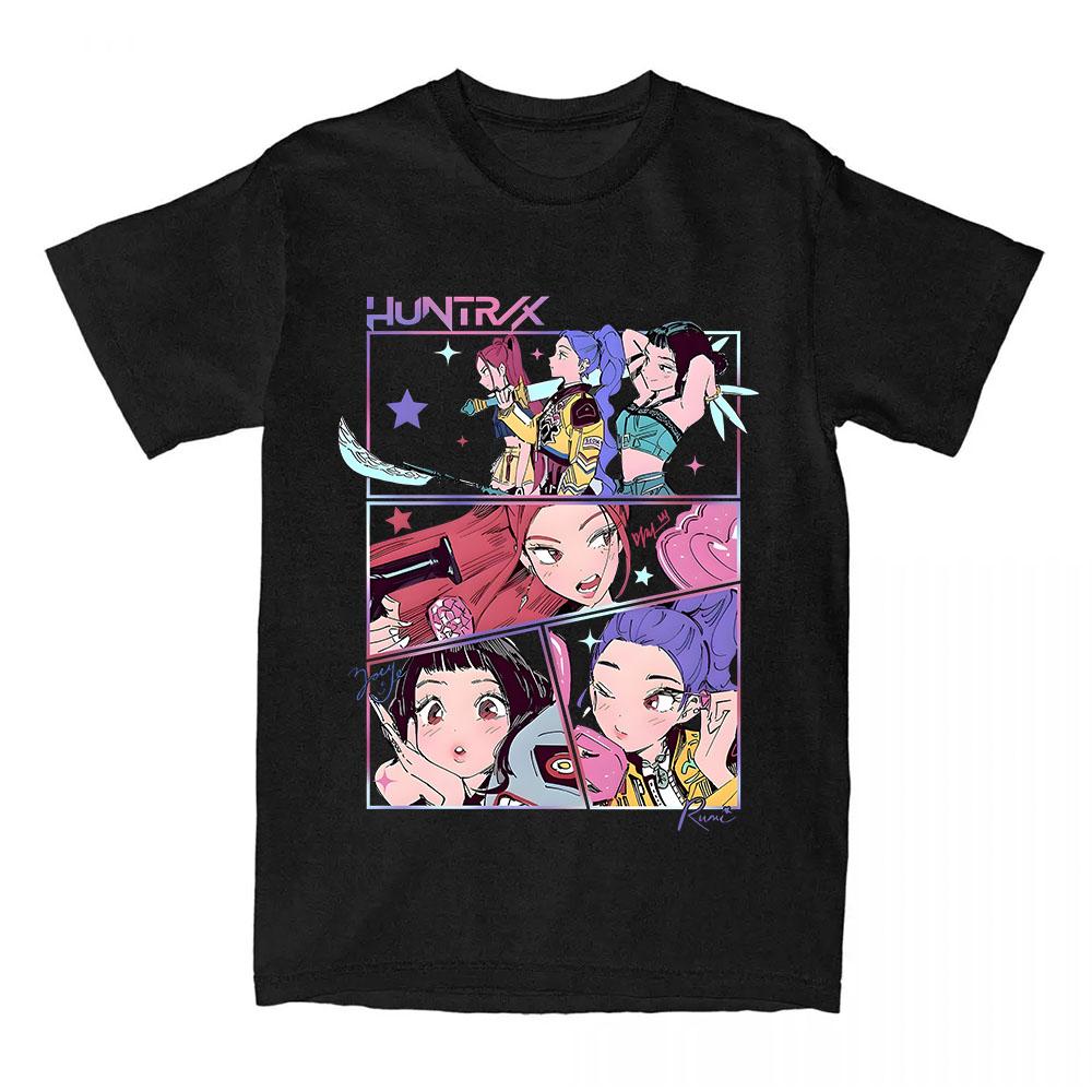 Kpop Охотники на демонов Huntrix Girls Футболка с коротким рукавом Хлопок Мода Графическая футболка Повседневный Хлопок Свободная Женская Футболка Уличная одежда