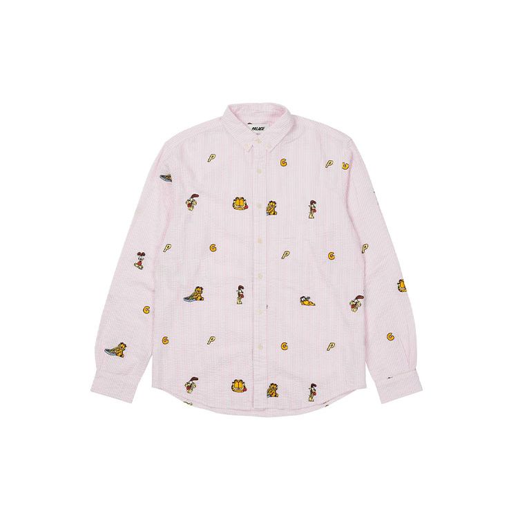 Palace FW21 Рубашка с длинными рукавами и вышивкой из мультфильма Гарфилд, топы унисекс, розовые P21SHT001