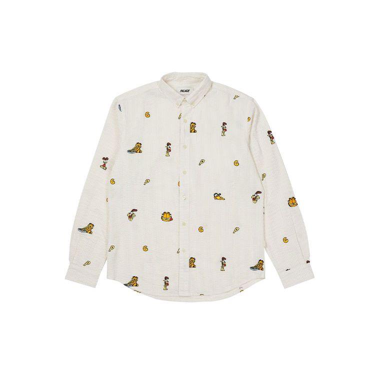Palace FW21 Рубашка с длинными рукавами и вышивкой мультфильма Гарфилд, топы унисекс, белые P21SHT002