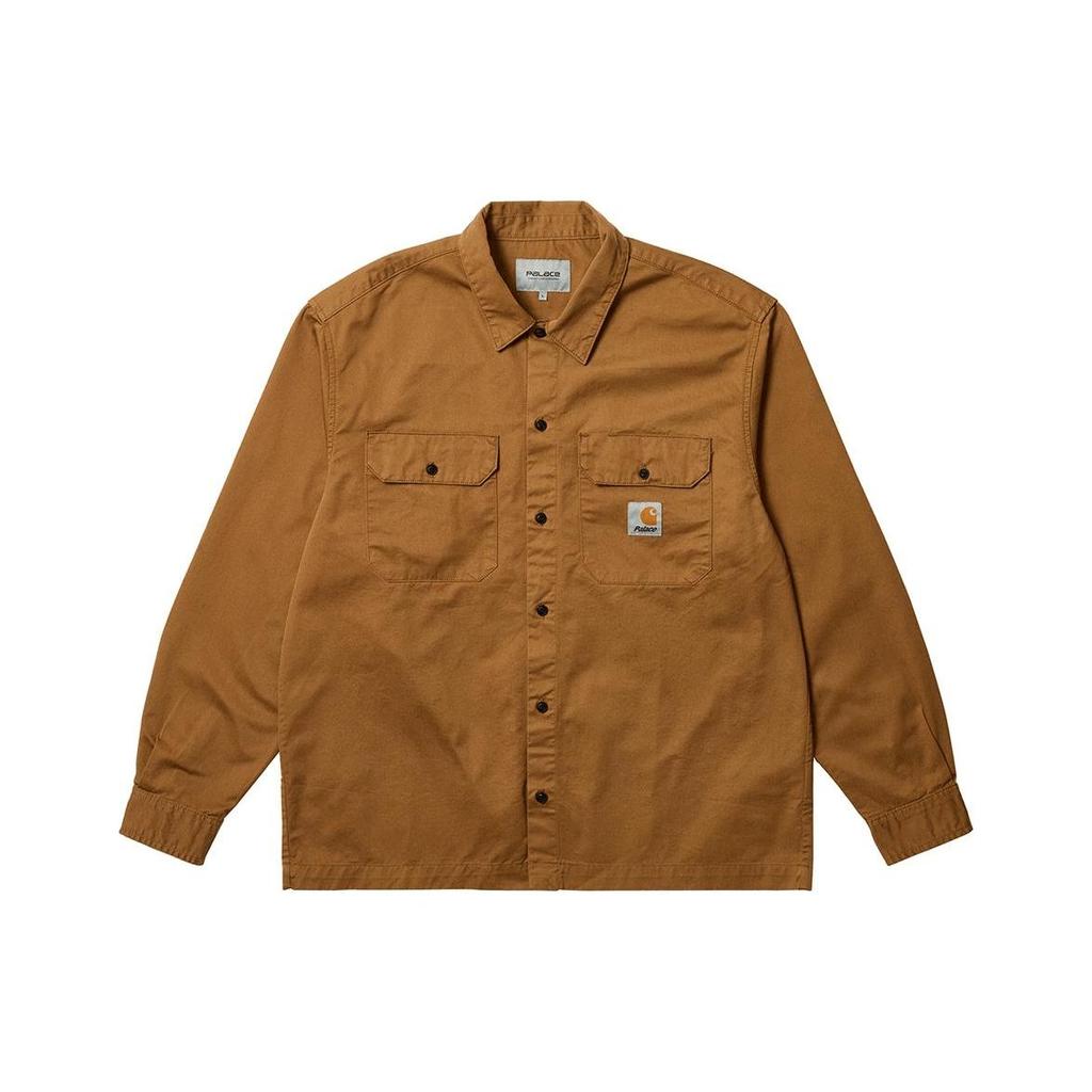 Palace x Carhartt WIP FW23 Совместная классическая рубашка с логотипом, двумя карманами, на пуговицах, топы унисекс цвета хаки I032721-KHAKI — купить товар онлайн с бесплатной доставкой по всему миру!