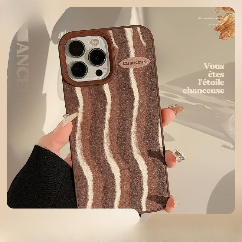 Коричневый полосатый чехол для телефона Apple 15 16promax Ретро Премиум 11 Подходит для iPhone 13 Кожа Противоударный Жесткий