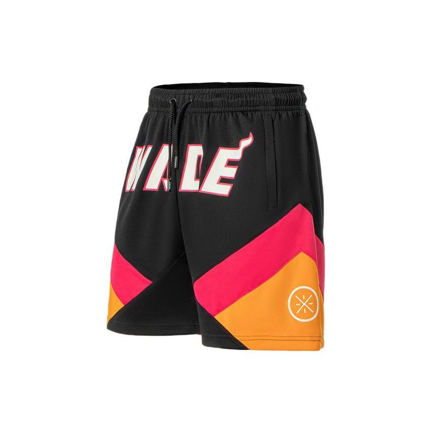 Li-Ning Прямые повседневные шорты серии Wade с контрастным буквенным принтом, мужские брюки, черный, красный, AAPS041-9