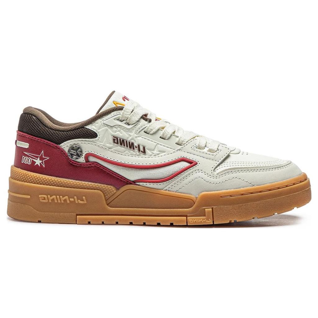 Li Ning 001 Btc Premium Удобные Универсальные Амортизирующие Нескользящие Износостойкие Низкие Повседневные Туфли Мужские Кроссовки Белые Красные AGCT495-1