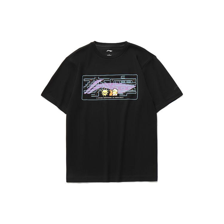 Li-Ning Спортивная модная серия с логотипом и мультяшным принтом, свободная футболка с круглым вырезом и короткими рукавами, топы унисекс, черные AHSR340-12