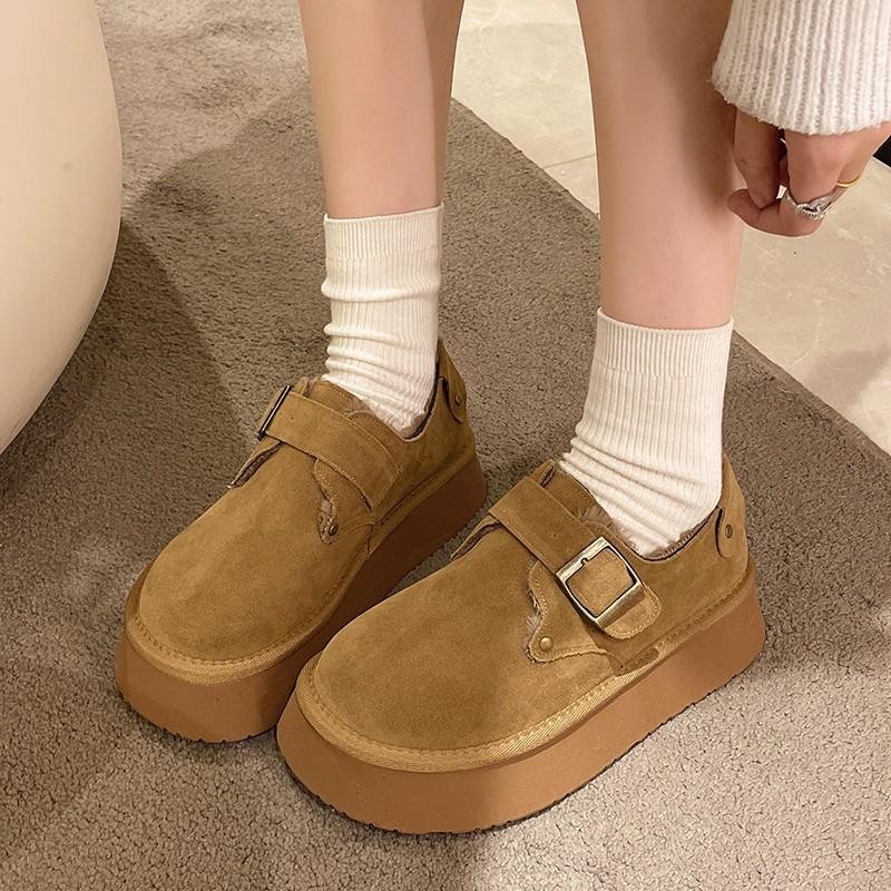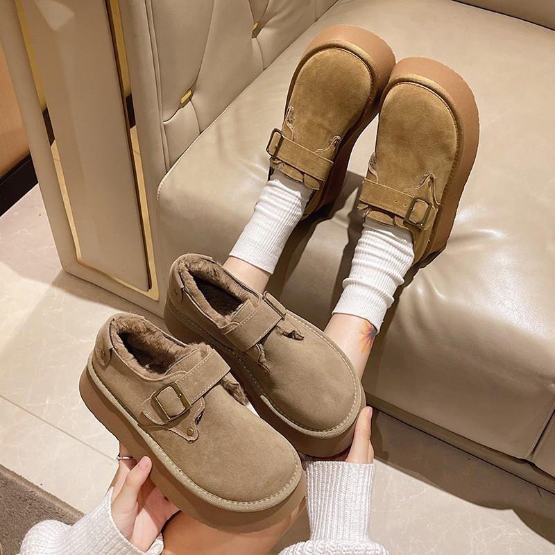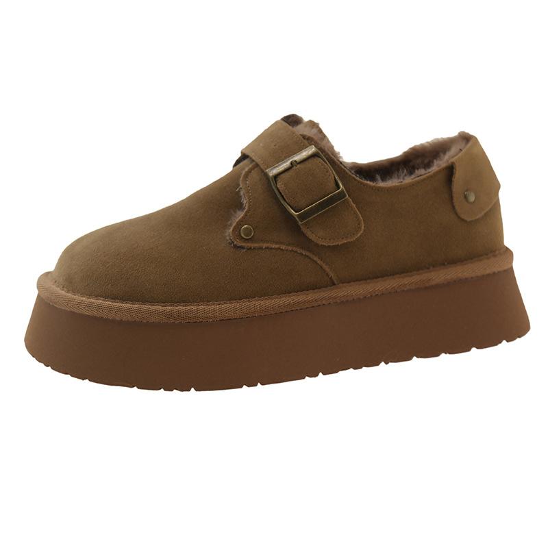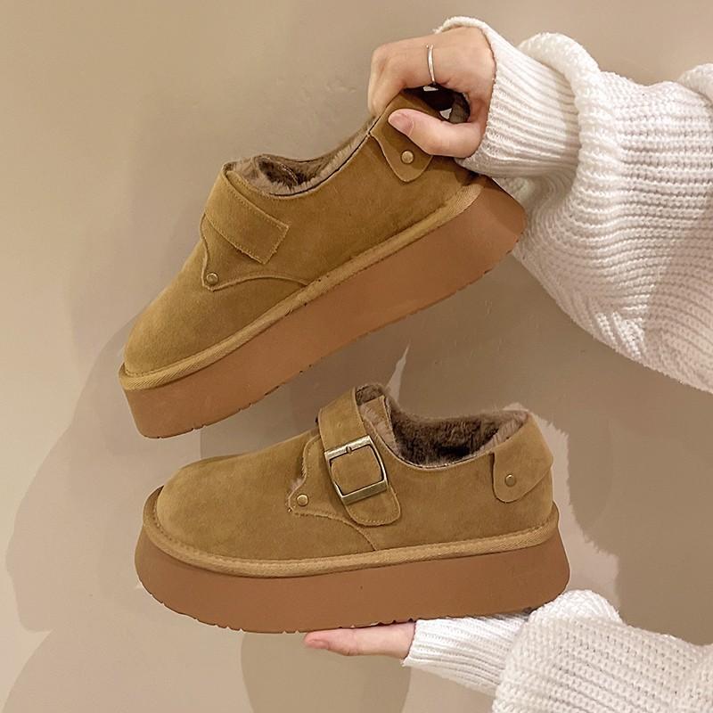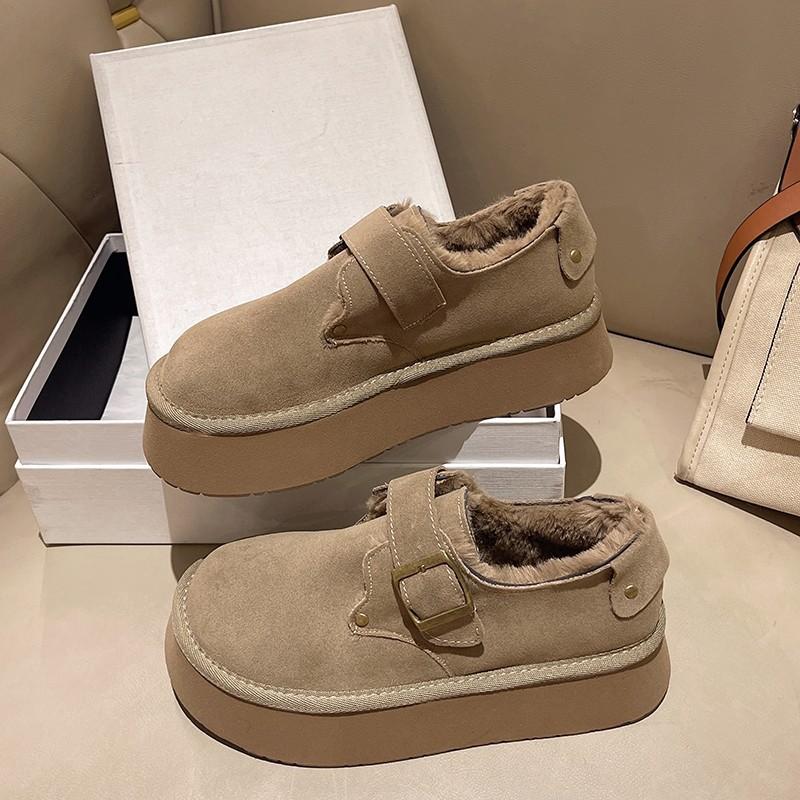 Женские зимние теплые меховые ботинки большого размера на толстой подошве, утепленные подкладкой ботильоны, противоскользящие спортивные хлопковые туфли для пеших прогулок, лоферы