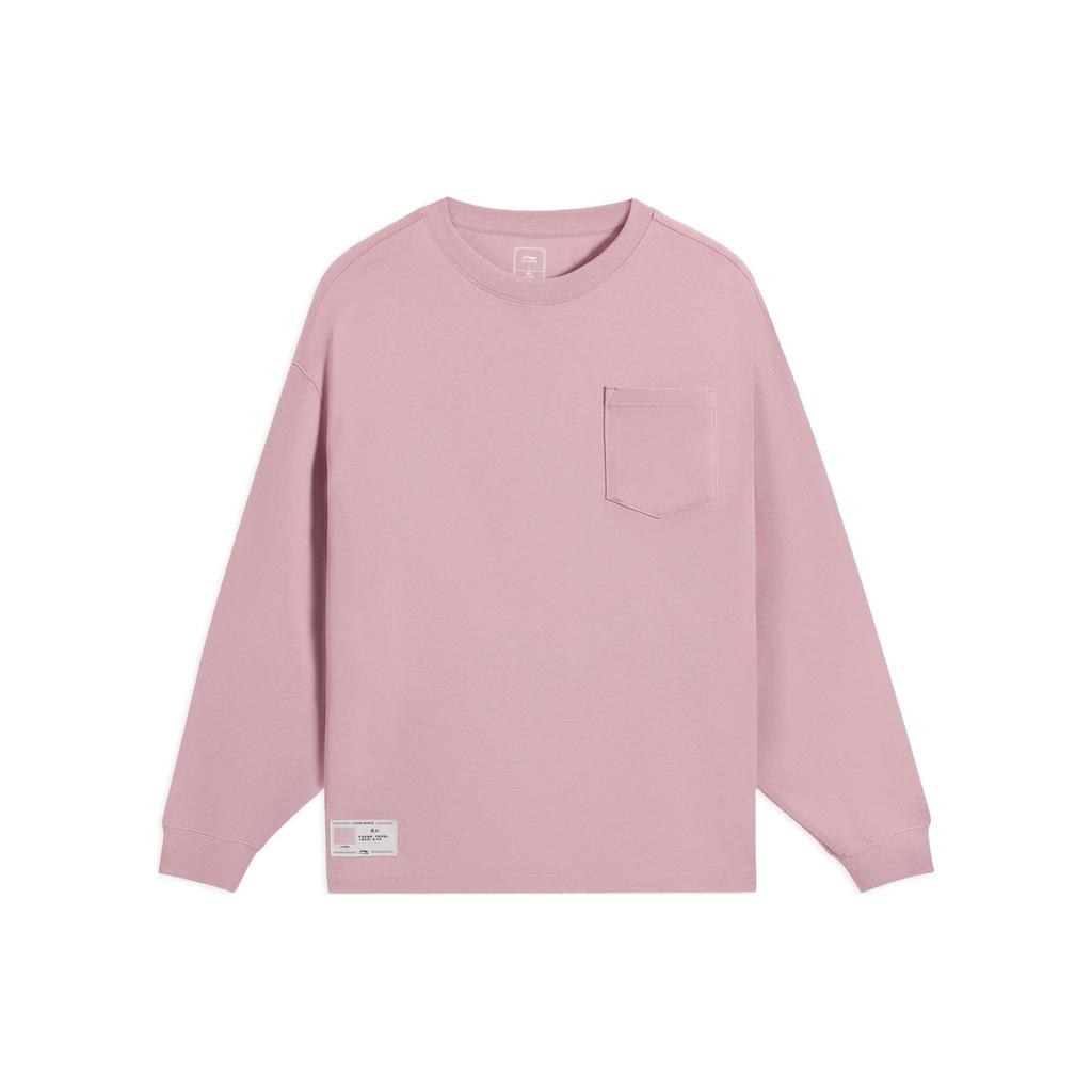 Li-Ning Футболка с логотипом Pure Color, с круглым вырезом и длинным рукавом, мужская, розовая, AHSS751-8
