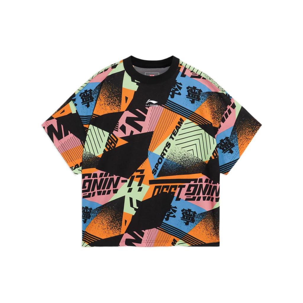 Li-Ning Лоскутная футболка с принтом алфавита, круглым вырезом и короткими рукавами, топы унисекс, черный AHSS155-2